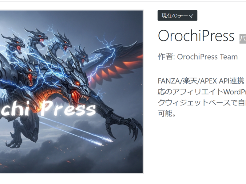 オロチプレスが2.60になりました。 テーマ更新からアップデートが可能です。 ショートコード生成ツール – v2.6.0 ノーコードで広告・商品一覧…